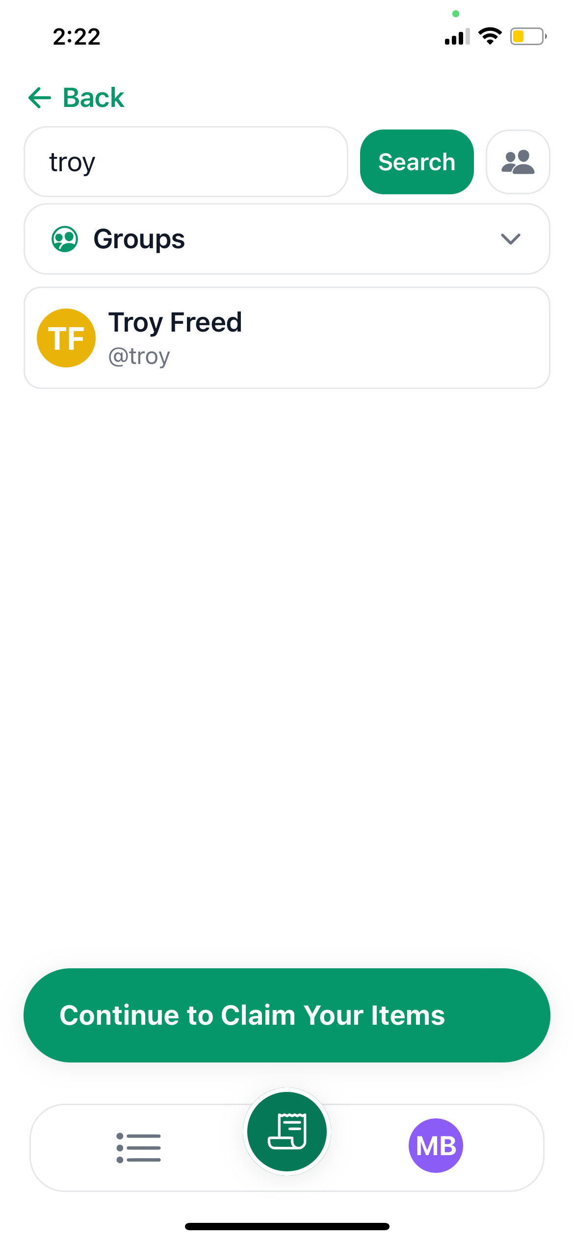 Finally, each user can claim their items, or a portion of an item they split. Their share of the bill, including their prorated share of the tax and tip
